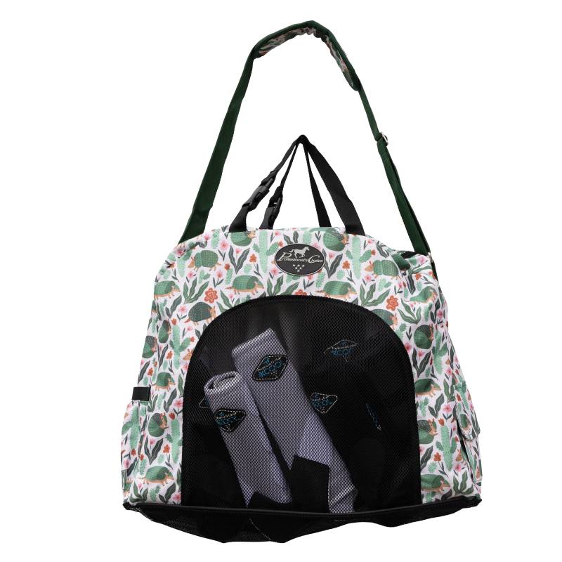 This versatile bag is designed to hold any of your accessories and tack including Sports Medicine Boots or a change of clothes. Double handles and a cushioned adjustable shoulder strap make it easy and comfortable to carry. Snaps on the handles. Mesh front and bottom allows for air to circulate and dirt to fall out.